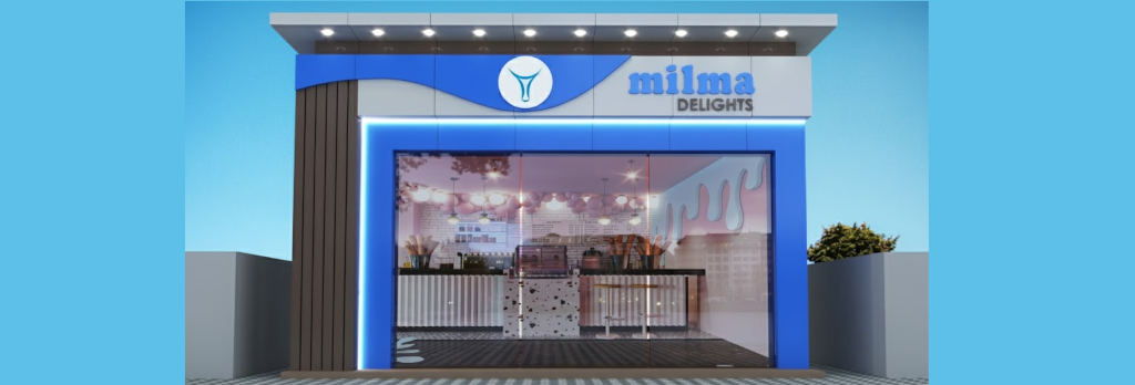 - Concept :Full-format experience centre with packaged and scooped ice cream, shakes,tea/coffee, snacks from Milma-approved vendors, and dairy retail
